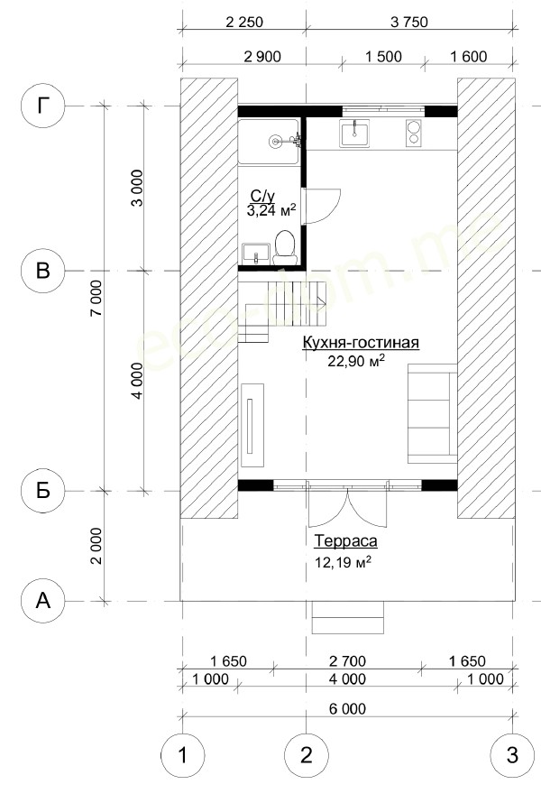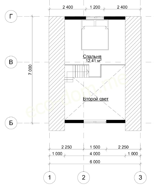 План схема А фрейм дом-шалаш 6х6 м № 02