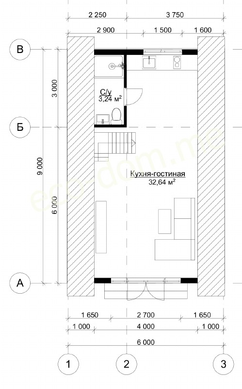 План схема А фрейм дом-шалаш 6х6 м № 05
