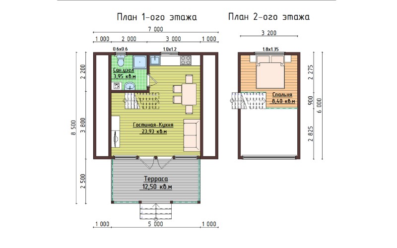 План схема А фрейм дом-шалаш 6х6 м № 07