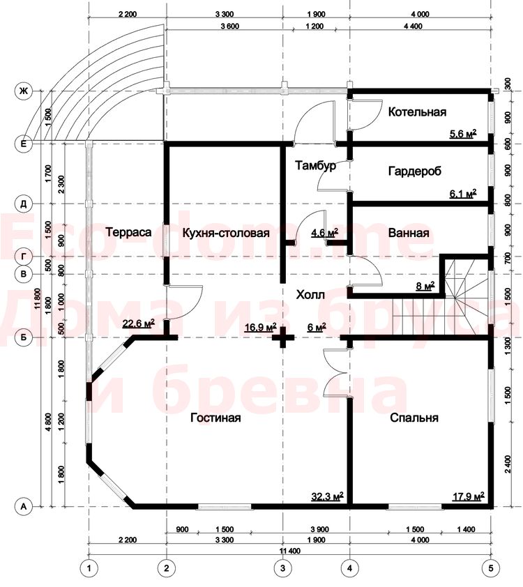 Проект дома из бруса 12х12 № ДБ-11 Проект дома из бруса 12х12 № ДБ-11