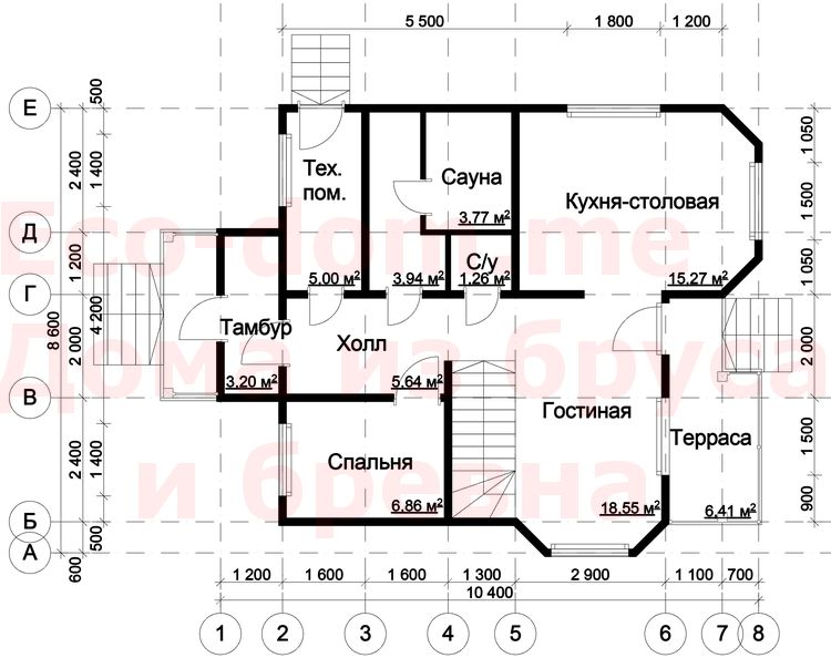 Проект дома из бруса 9х11 № ДБ-14 Проект дома из бруса 9х11 № ДБ-14