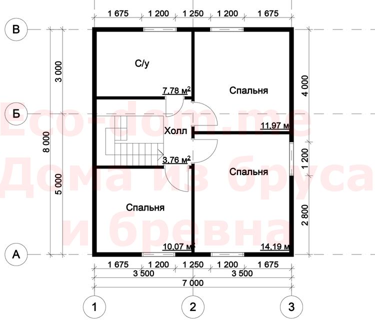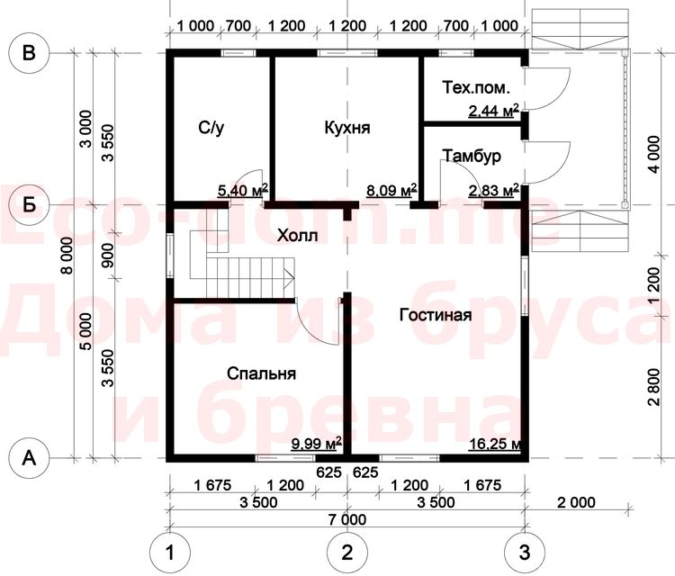 План схема Проект дома из бруса 8х7 № ДБ-16