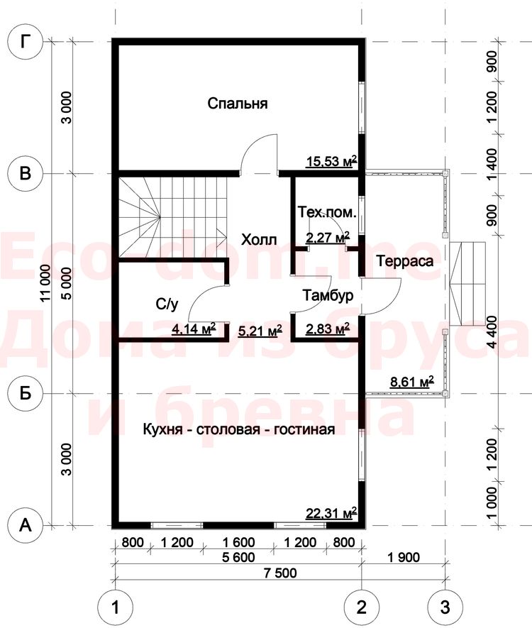 Проект дома из бруса 11х8 № ДБ-18 Проект дома из бруса 11х8 № ДБ-18