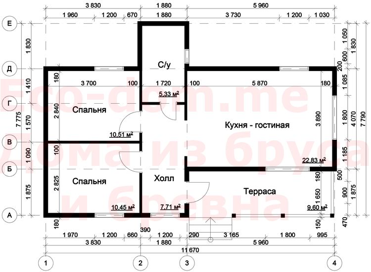 План схема Проект дома из бруса 8х12 № ДБ-22