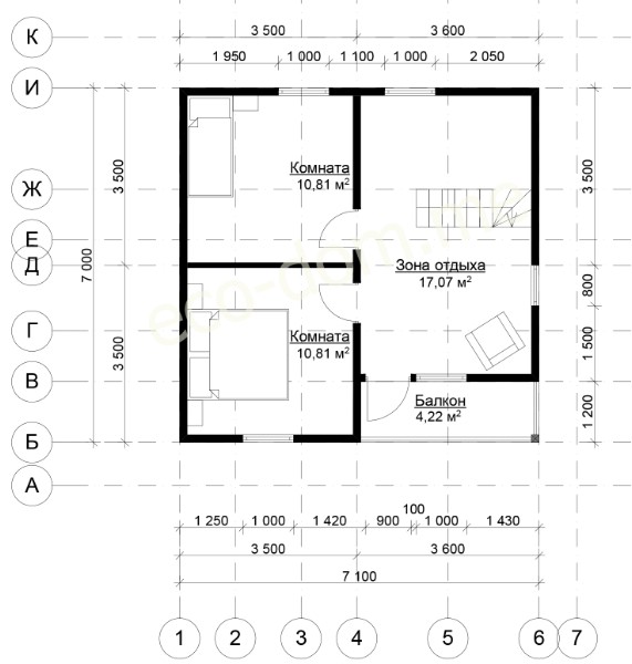 План схема Проект дома из бруса 8х8 № ДБ-30