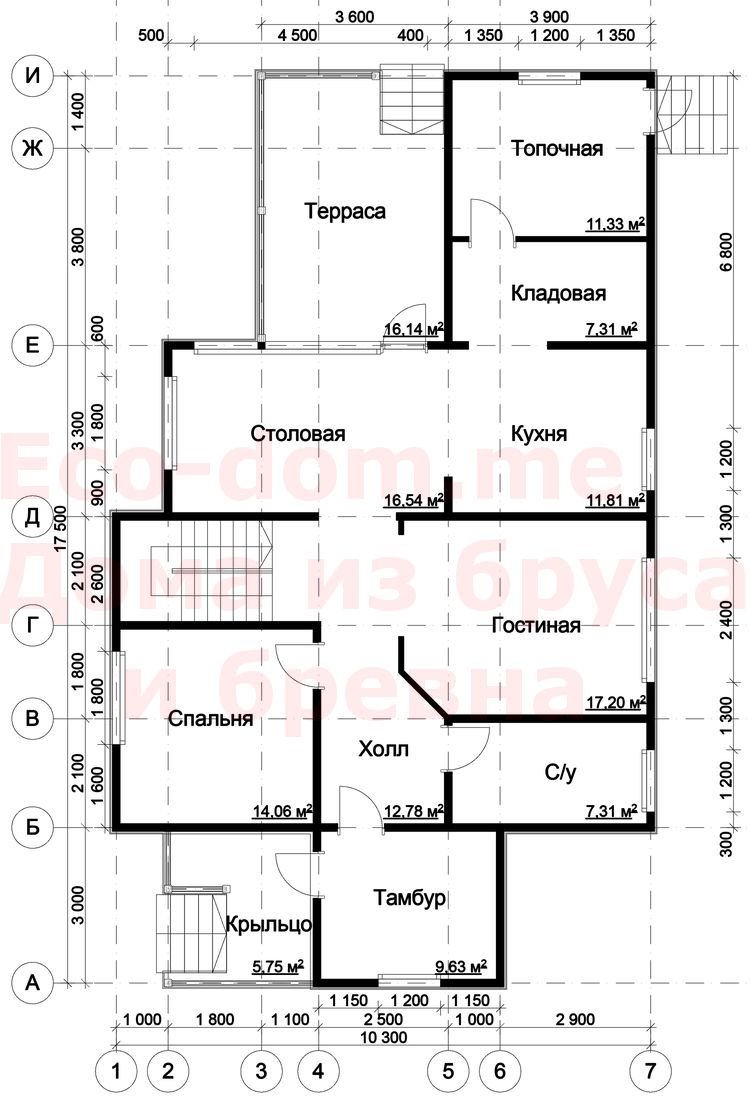 Проект дома из бруса 18х11 № ДБ-37 Проект дома из бруса 18х11 № ДБ-37