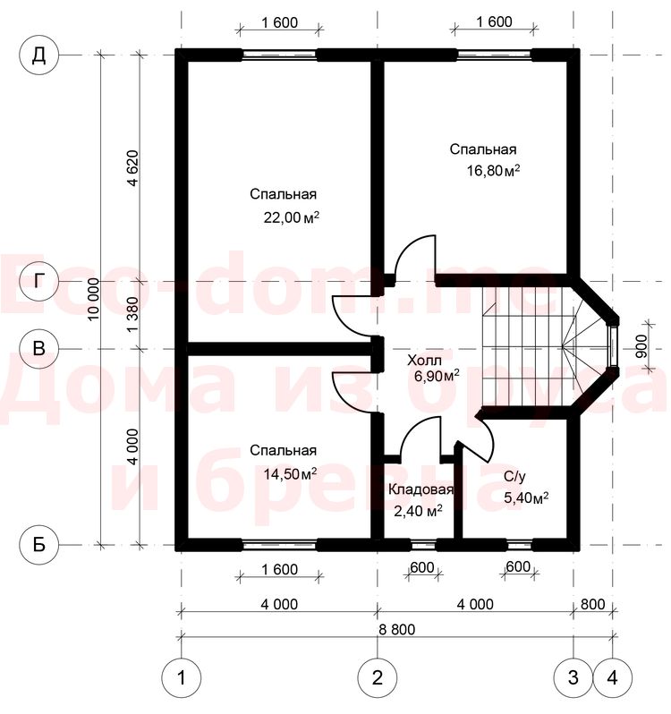Высота стен 2-го этажа 1,5 метра.