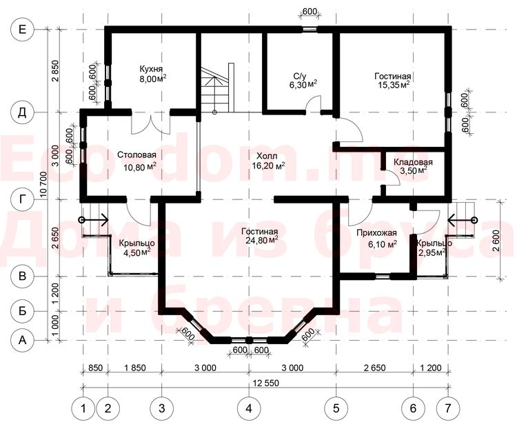 Если Вам понравился проект дома из бруса, Вы можете заказать его строительство или строительство сруба двухэтажного прямо сейчас оформив заявку позвонив нашим менеджерам.