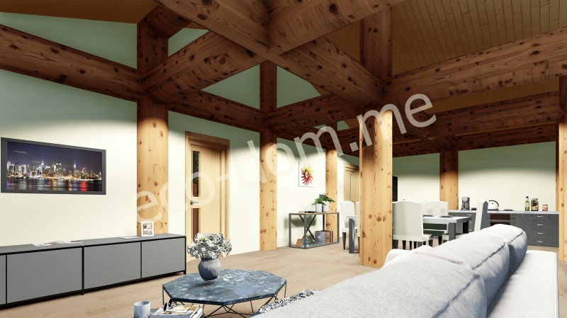 5. Имитация бруса 135*15 мм обшитие внутренней части дома по стропилам;
