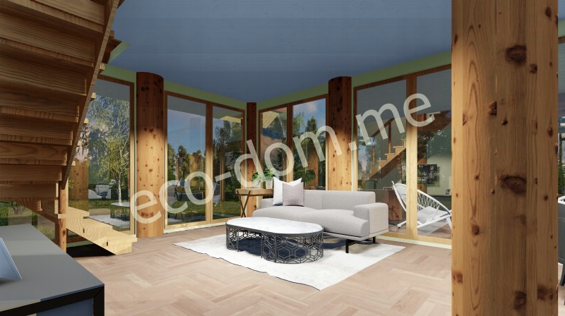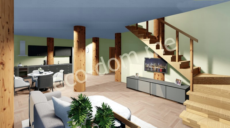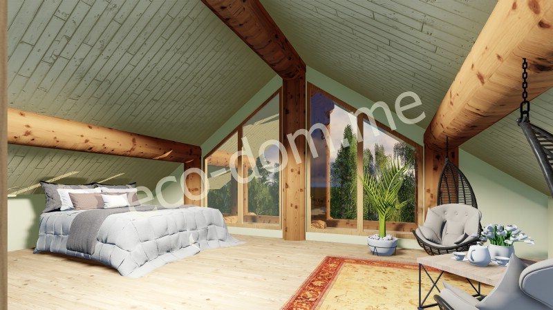 5. Имитация бруса 135*15 мм обшитие внутренней части дома по стропилам;