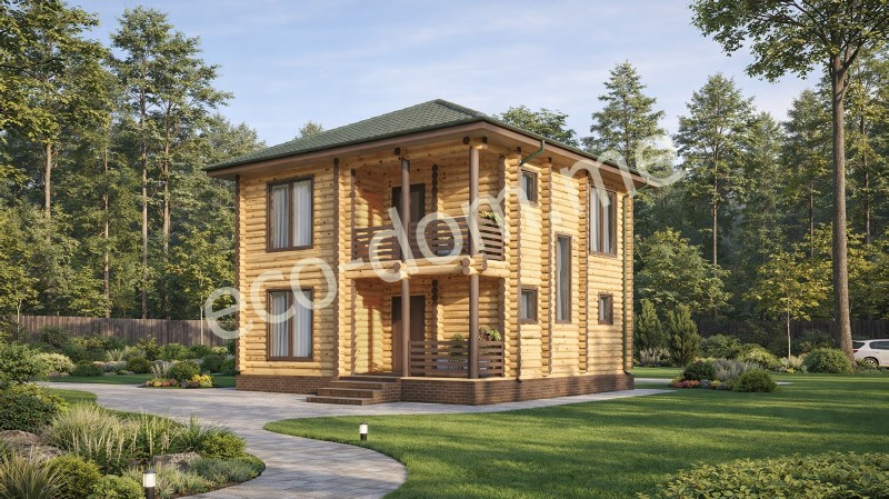 Дом из бревна 9 на 9 № ДиБ-49 строительство домов из бруса и бревна под ключ цены