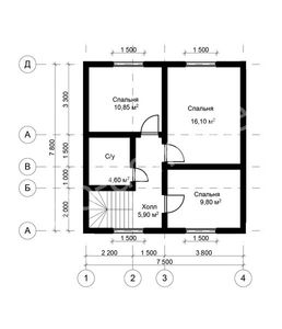 План схема Проект дома из бревна 8х8 № ДиБ-65
