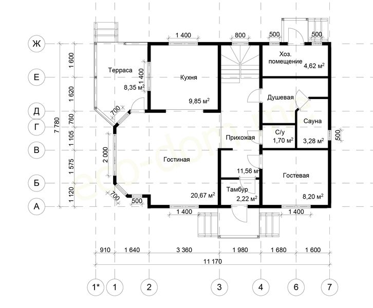 - На входе предусмотрен тамбур, позволяющий предотвратить выхолаживание помещений зимой.
