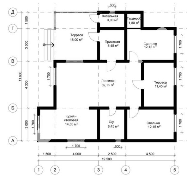 План схема Проект дома из бруса 12х13 № ДБ-52