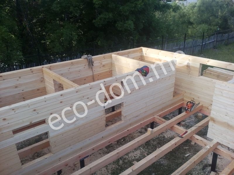 - Заготовка конструкции (оцилиндрованное бревно укладывается по-разному со строганным).