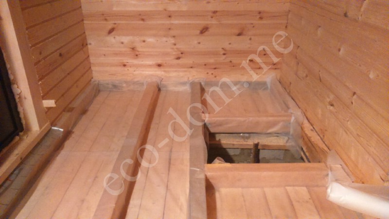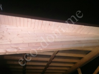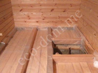 Дома, построенные по технологии ручной рубки, могут давать усадку в районе 6-8 % от изначальной высоты. Для этого проводятся специальные компенсационные мероприятия, которые должны минимизировать влияние усыхания материала на конструкцию дома. Только после того, как этот процесс будет окончен, дома из бревна под ключ оснащаются окнами, дверьми, проводится внутреннее благоустройство помещения. В качестве основания применяется ленточный фундамент.